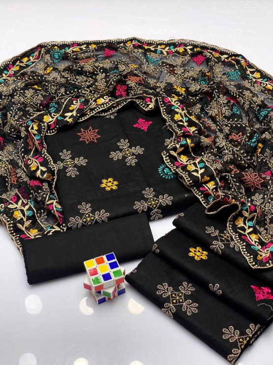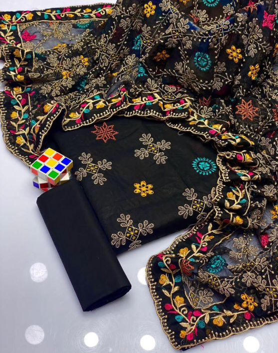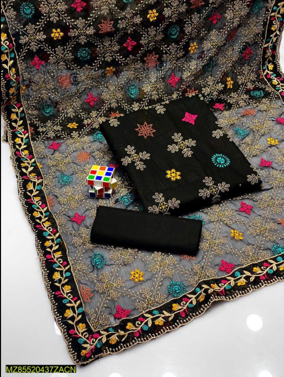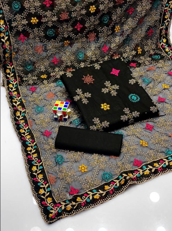 ✅ Pattern: Embroidered shirt front, neckline, daman, and trouser, with a plain back and embroidered dupatta.