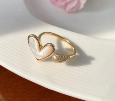 Alloy Adjustable Ring for Women with Heart Design Off White quantity