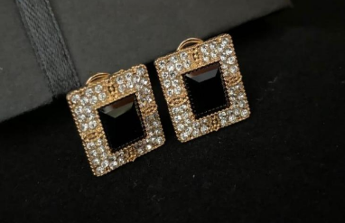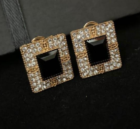 Alloy Studs for Women with Artificial Stones in Modern Design Black quantity