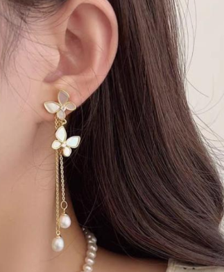 Gold Plated Alloy Earrings for Women with Silver Stone Butterfly Hanging Design Black quantity