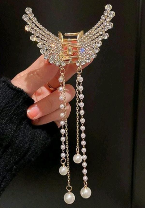 Gold Plated Alloy Hair Claw for Women with Silver Artificial Stones and Butterfly Design Golden quantity