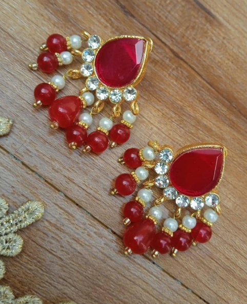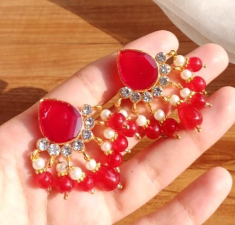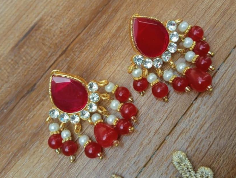 Gold Plated Ear Studs for Women with Artificial Stones Golden quantity