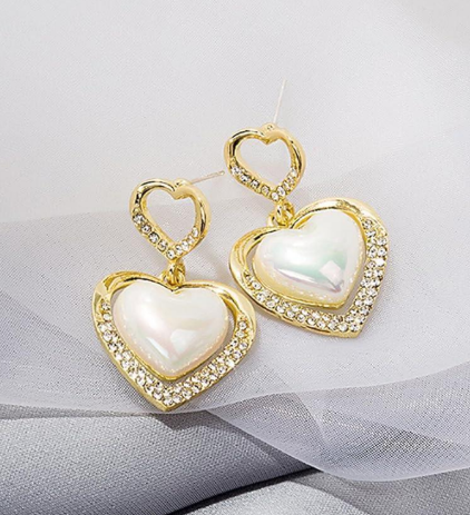 Gold Plated Earrings for Women with Love Heart Gemstone Design Golden quantity