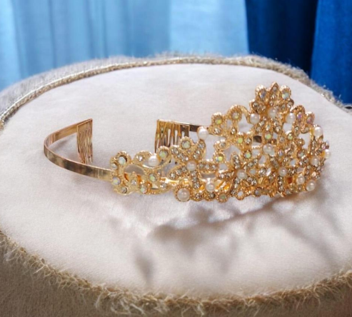 Gold Plated Metal Tiara for Women with Crystal and Pearl in Vintage Design Golden quantity