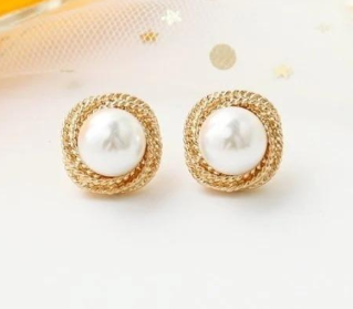 Gold Plated Studs for Women with Pearl Modern Design White quantity