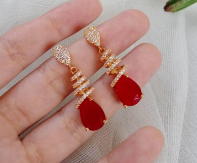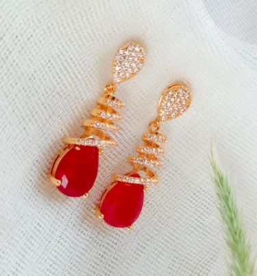 Gold Plated Zircon Earrings for Women with Elegant Design Red quantity