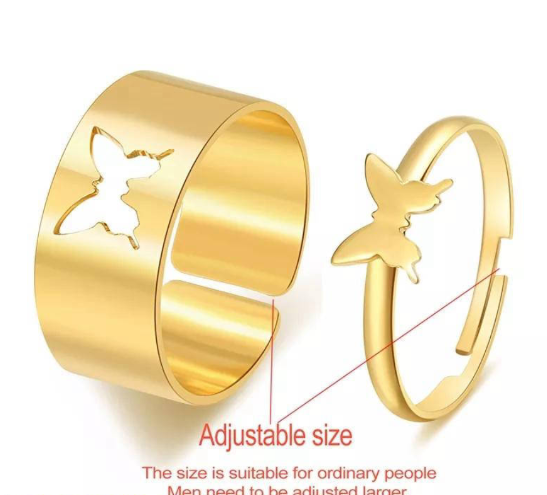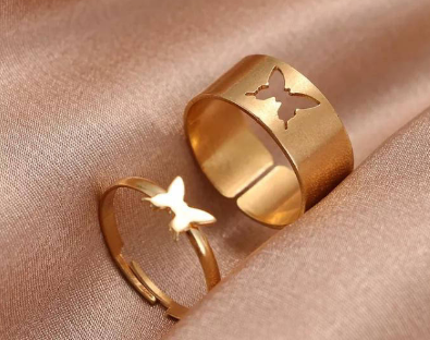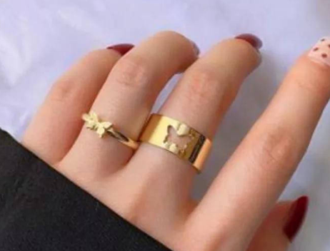 Golden Alloy 2 Pcs Rings Set for Women Adjustable Western and Korean Style Golden quantity
