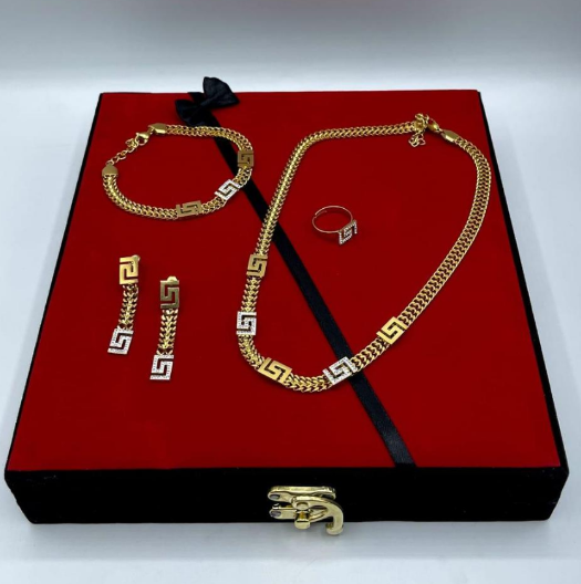 Golden Plated 5 Pcs Jewelry Set for Women with Bracelet and Jewellery Box Golden quantity