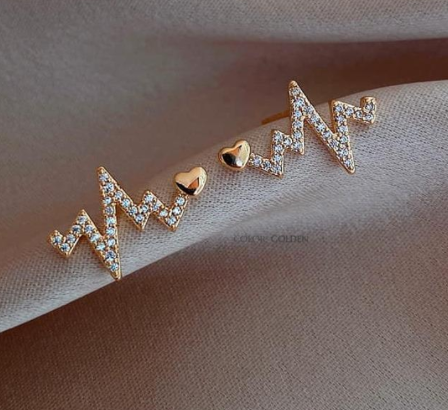 Golden Plated Zigzag Earrings Pair for Women 1cm x 0.5cm quantity