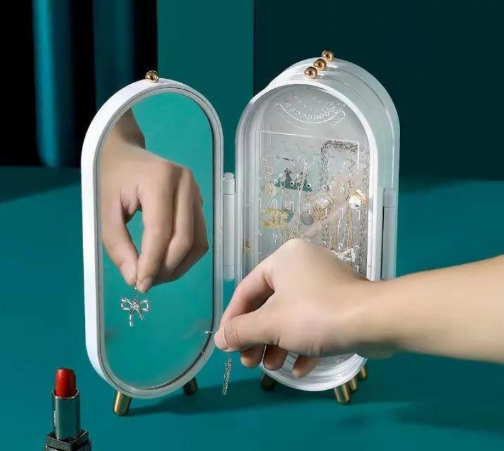Modern Plastic Jewellery Box for Women with Unique Design White Green quantity