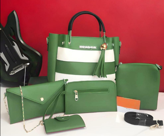 PU Leather Plain Shoulder Bags for Girls 5 Pcs Set with Long Strap and Golden Chain Green quantity