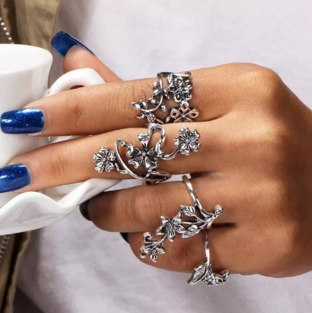 Silver Plated Alloy 4 Pcs Rings Set for Women in Western and Korean Style Silver quantity